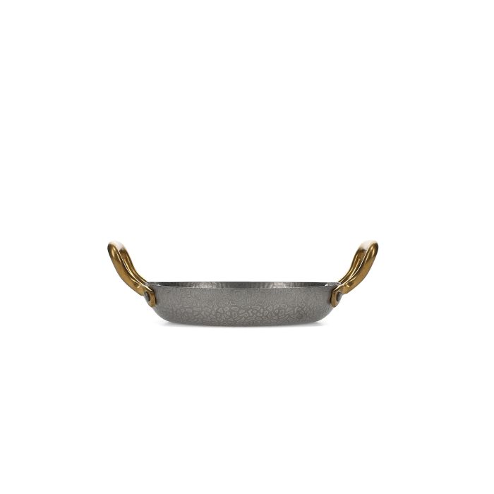 Servierschale 18 x H 3,5 cm mit goldenem Griff, gehämmert, antikes Silber Serve