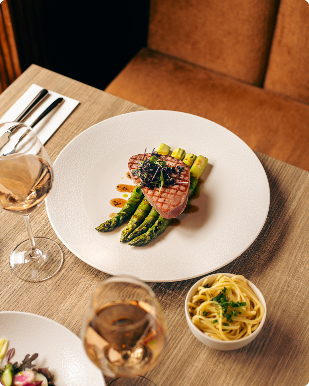 Seasonal vegetables, fresh salads and refined dishes call for a setting that enhances that feeling. Soft tones, natural shapes and tableware that lets the food speak all help to complete the picture.